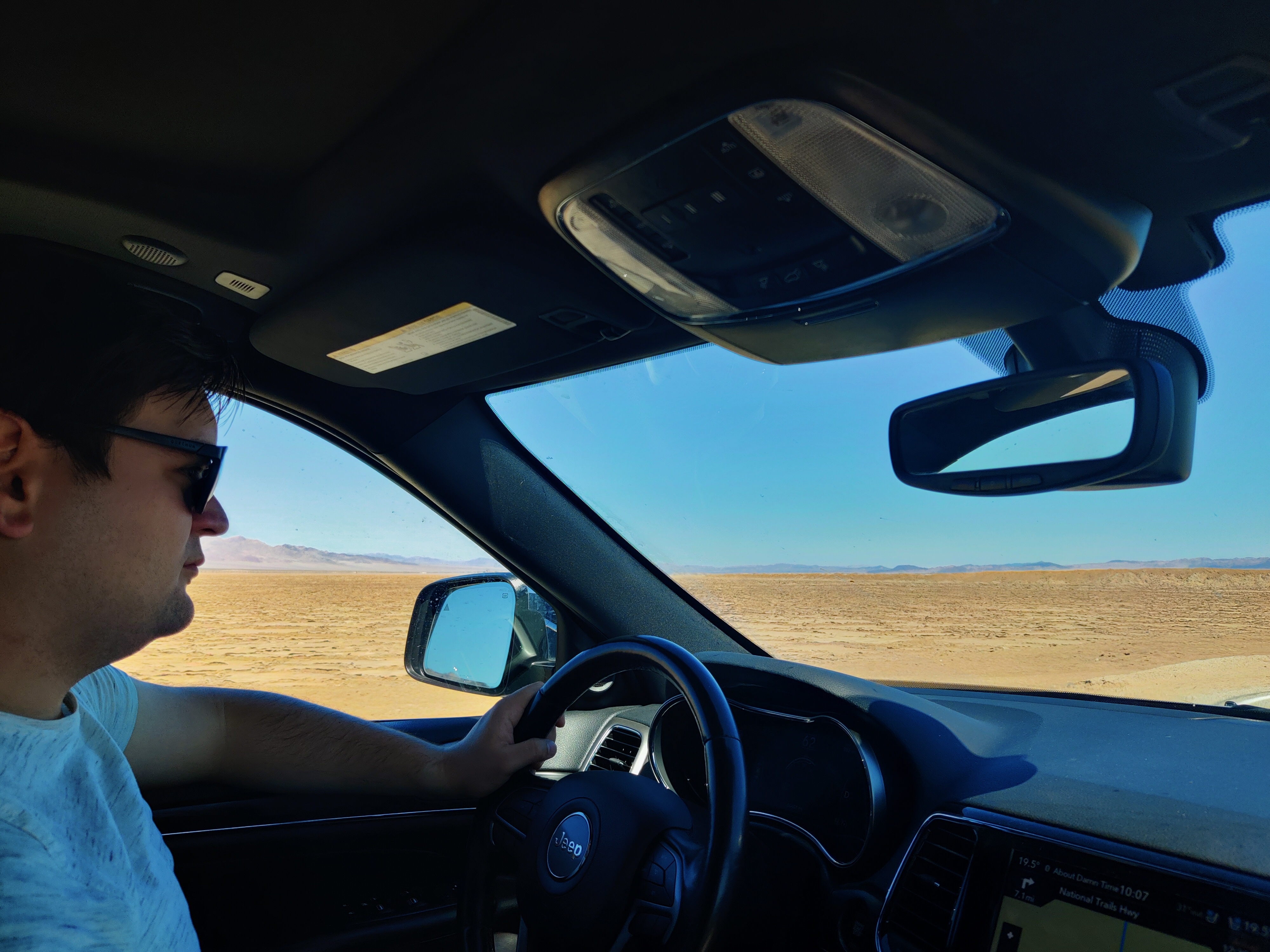 ’S ochtends was het vooral kilometers maken en lekker doorkarren. Het zijn lange rechte wegen, navigeren is in ieder geval niet zo ingewikkeld. Het landschap veranderde vandaag weer. Grote dorre vlaktes veranderden in bergen op de achtergrond en steeds meer groen rond de Colorado River.