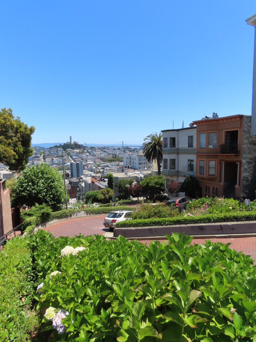 Vandaag wilden we graag Lombard street zien. Dit is een hele lange straat door San Francisco, net als dat alle straten hier heel lang zijn. Maar op 1 punt was de straat zo stijl dat ze er veel bochten in hebben gemaakt. Een grappig gezicht om te zien. Alles was ook mooi in bloei op dit moment. We zijn die kant op gegaan met de Cable car. Die in San Francisco is de laatste in de wereld die nog met de hand wordt bediend. Dus een ritje hiermee kunnen we natuurijk niet overslaan.
