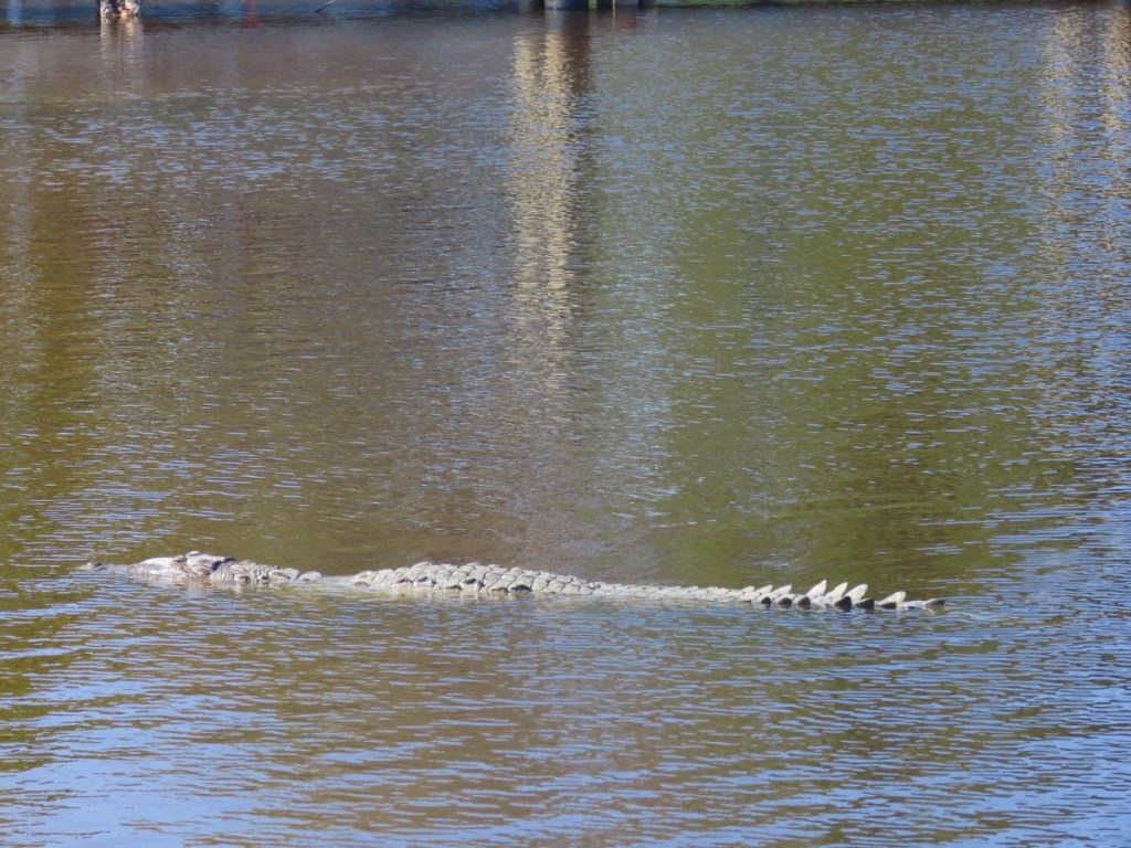 Daarna zijn we nog even in de store wezen neuzen en zagen we allemaal mensen aan de kant staan. We hadden van de mevrouw in het visitors centre gehoord dat het nu het goede moment was om Amerikaanse krokodillen en manatees te kunnen zien in de haven. En ja hoor, een krokodil. Eentje lag er zowat op de parkeerplaats, de ander lag in het water te chillen. Aan de andere kant van de haven spotte we vervolgens ook nog een groepje manatees. Waarschijnlijk zat er ook een moeder met baby bij. Wat was dit weer tof!