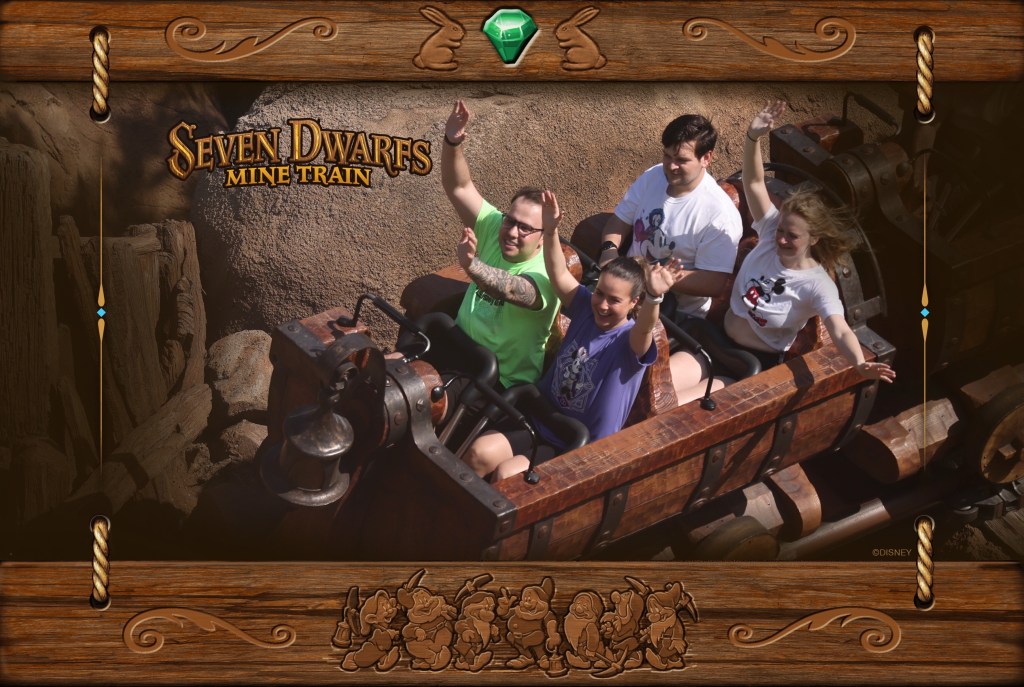 Om half 9 waren we dan ook bij de ingang waarna we na wat ohh en ahh’s op mainstreet en bij het kasteel als mensen met een missie doorliepen naar Seven Dwarfs Mine Train. We hadden namelijk al gezien dat deze telkens de langste wachttijd heeft. Wij waren na ongeveer 40 minuten al aan de beurt. Het waren een soort mijnkarretjes die toch nog wel snel over het parcours schoten.