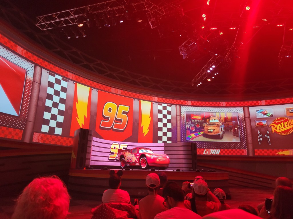 Omdat 3x scheepsrecht is zijn we nog een keer in Star Wars gegaan, dit keer ging het gelukkig helemaal goed! Helaas sloeg daarna het slechte weer toe. Net toen we Slinky Dog Dash hadden kunnen reserveren begon het met spetteren en ging de attractie nu dicht. Daarna barste het los met regen en onweer, dus kozen we een overdekte attractie: McQueen Racing Academy. Nadat we daar een tijdje konden schuilen hebben we de Tower of Terror nog een keer gedaan en zijn we nog door wat winkeltjes gegaan. We hebben burgers gegeten en was het alweer tijd voor de avondshow.