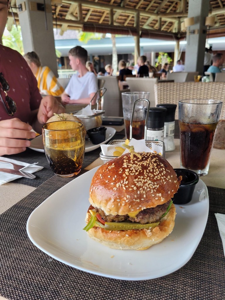 Daarna hebben we geluncht bij het restaurant. Yannick had een lekkere kipburger en Michelle heeft haar eerste cheeseburger op. Als je onze eerdere trips hebt gevolgd, dan zul je weten dat dit een record is. 4 dagen op vakantie en nu pas een cheeseburger….