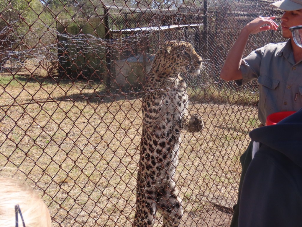 We hebben flink wat dieren gezien, maar wel alleen de dieren die in het centrum wonen. De dieren die ze uiteindelijk weer uit gaan zetten mogen niet wennen aan mensen. Dieren die in het centrum wonen zijn bijvoorbeeld verschillende gieren, arenden, leeuwen, cheeta’s, luipaarden, hyena’s… een heel divers pakket dus. Sommige wonen er omdat ze bijvoorbeeld als baby zijn opgevangen door mensen en daardoor niet bang zijn voor mensen. Andere zijn gewond geraakt doordat ze worden vergiftigd door stropers, vast kwamen te zitten in energielijnen of in gevecht met andere dieren.