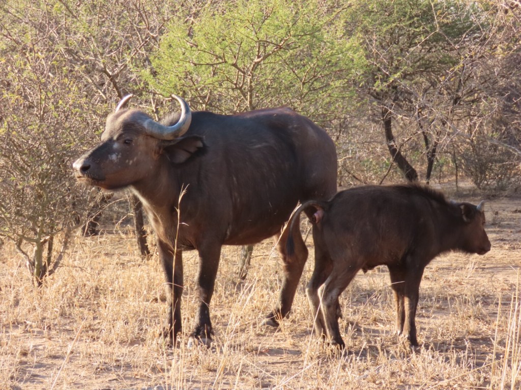 We werden weer met het busje naar het andere reservaat gebracht en gingen toen weer over in de andere auto. Dit keer met alleen maar Nederlanders in de auto. Vandaag hebben we weer een aantal goede dieren gespot. In toevoeging op gisteren hebben we nu in het reservaat ook de buffel gezien en goed op de foto kunnen zetten. Het waren 2 vrouwtjes en een kleintje van waarschijnlijk minder dan een jaar oud. Na een lange tijd kwamen we ook weer een neushoorn tegen, dit keer liet hij niet alleen z’n billen zien maar ook zijn kop. Ook vandaag zagen we een leeuw. Dit keer een eenzaam vrouwtje. Het begon al een beetje donker te worden toen we haar tegenkwamen, dus maar goed dat we gisteren ook al leeuwen hebben gezien. De dag maakte we af met wat klein wild zoals een bushbaby en een soort haas. Ook hebben we nog een krokodil gezien en in het donker zagen we in het meer ook wat nijlpaardenoogjes. Ook de nyala’s, impalas en koedoes kwamen weer meerdere malen terug vandaag.