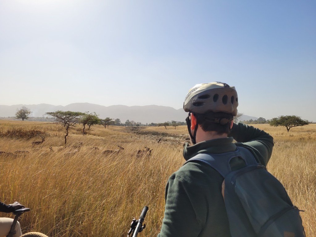 We hadden om 10:00 uur een guided mountainbike geboekt. Samen met onze gids, een leuke meid van onze leeftijd, stapten we op de fiets. Ze heeft ons tijdens de tocht veel geleerd over de bomen, zo zagen we een guave struik. Die zijn er veel doordat de vogels de restjes van de vrucht op eten en vervolgens weer uitpoepen. Ze moeten zorgen dat het niet teveel wordt omdat de dieren anders niet meer genoeg gras hebben om van te grazen. Ook vertelde ze ons over de verschillende dieren die we tegenkwamen, zebra’s zijn bijvoorbeeld eigenlijk zwart en hebben witte strepen, ze zijn allemaal uniek. Ook hebben ze bij hun knieën een soort zwart plateautje zodat wanneer ze gaan liggen, hun hoeven niet in hun huid schuren.