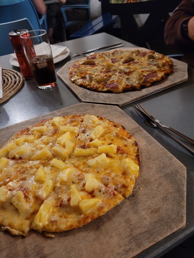 We aten bij Reef & Dune. Een gezellig tentje waar je zowel pizza’s, burgers, vlees en vis kan bestellen. Voor een margeritha pizza betaal je hier omgerekend zo’n 6 euro. Dat zal je in Nederland niet snel meer vinden. Bij het eten kwamen we ook weer een stel tegen waarmee we in Tornhill (Guersney safari) zaten en die we vervolgens in Mlilwane weer tegenkwamen. Zij gaan hierna naar boven reizen, terwijl wij doortrekken langs de kust en uiteindelijk richting Kaapstad. We hebben allebei een lekkere pizza op en sloten af met een oreoshake.