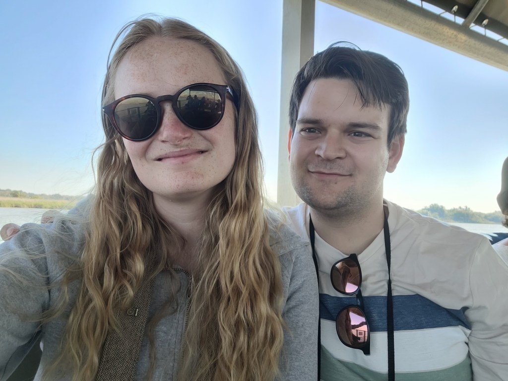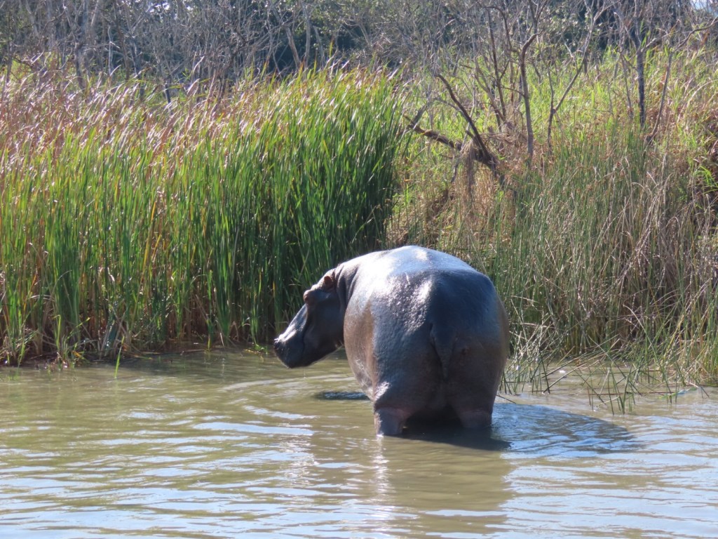 Om 9 uur vertrok onze bootsafari opzoek naar hippo’s en crocs (nijlpaarden en krokodillen). Even een shoutout naar Yvanka voor dit leuke cadeau! We vonden al snel een eerste familie nijlpaarden, deze gaven ze de bijnaam townsies omdat dit waarschijnlijk de familie is die je in het dorp tegen kan komen. Wij hebben ze zelf nog niet gezien, maar ze schijnen elke avond wel te komen. Daarna vonden we 2 krokodillen. De krokodillen in dit deel van het park zijn relatief klein omdat ze voornamelijk vis eten. De krokodillen in het noorden van het park eten veel vlees en krijgen dus meer proteïnen binnen.