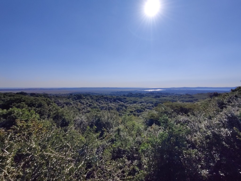 Na deze informatieve boottocht van 2 uurtjes zijn we weer even langs onze lodge gegaan en zijn we vervolgens onze tocht naar Cape Vidal gestart. Dit is onderdeel van het iSimangaliso Wetland park. Dit park kent verschillende delen met verschillende ecosystemen. Het was een ruim uur rijden voordat we bij het strand van Cape Vidal waren, en onderweg hebben we nog flink wat vogels gespot. Ook nog nijlpaarden en een neushoorn.