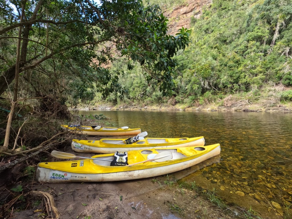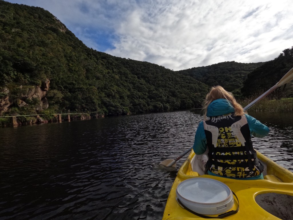 Vandaag was het alweer tijd om Wilderness te verlaten, maar niet voordat we hier nog hadden gekanoot. Daarvoor moesten we natuurlijk wel weer goed gevoederd zijn, dus was het tijd voor een ontbijtje bij de B&B. Yannick ging voor English Muffins met bacon, gepocheerde eitjes en een Italiaanse saus en Michelle ging voor de croissant met daarbij wat roerei.
