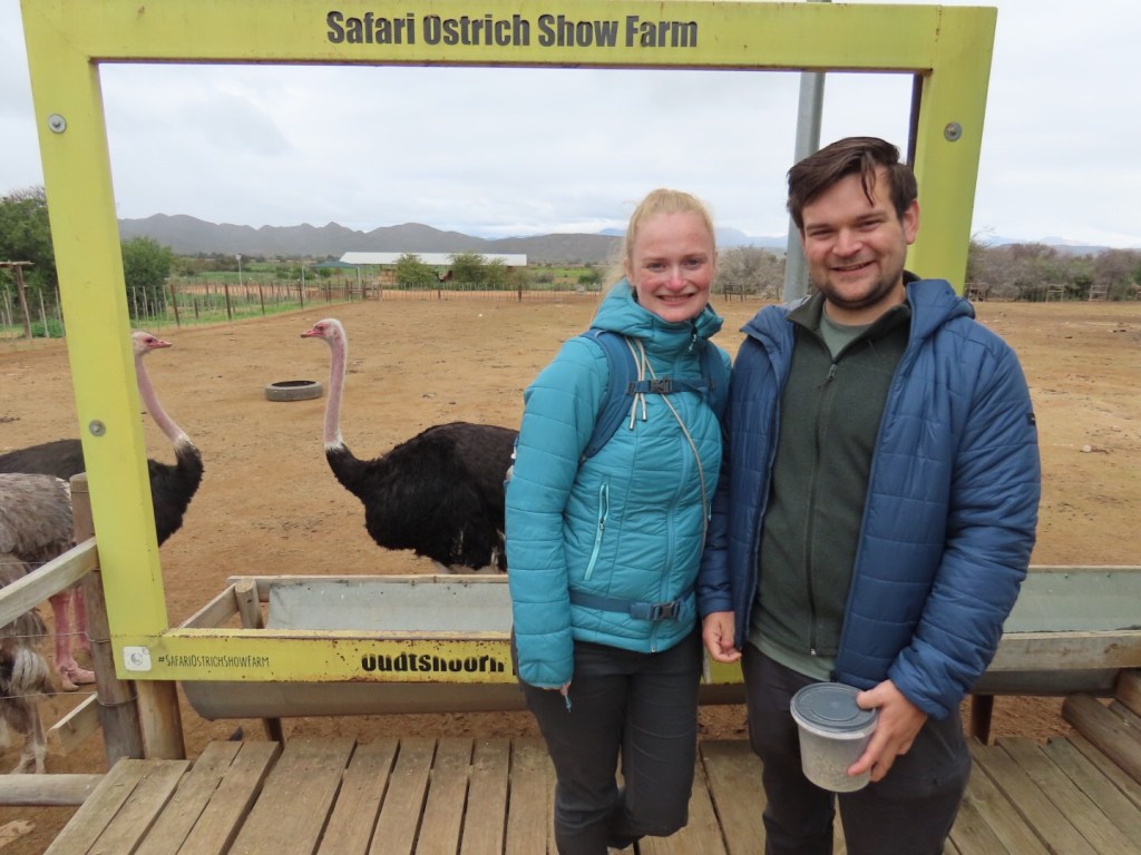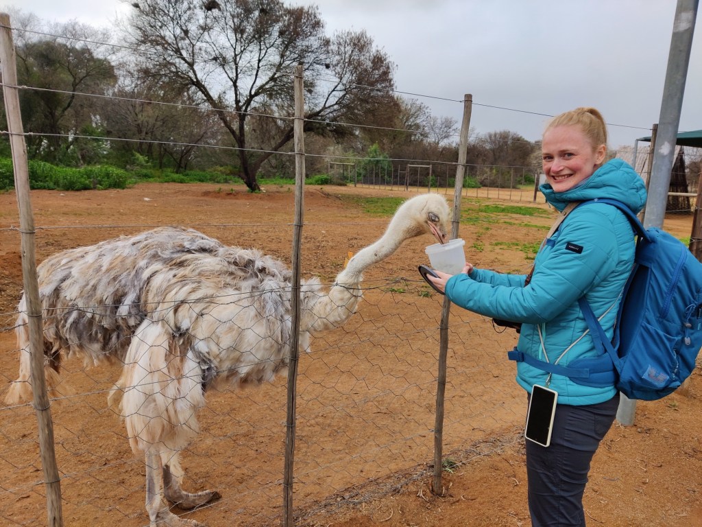 Het was niet heel lang rijden, dus iets voor twee uur kwamen we aan in Oudtshoorn. We voelden ons hier gelijk thuis, want Oudtshoorn is blijkbaar de tweelingstad van Alphen aan den Rijn, wat een toeval! Verder staat deze stad bekend om alle struisvogel boerderijen die er zijn, dus besloten wij er eentje te gaan bezoeken.