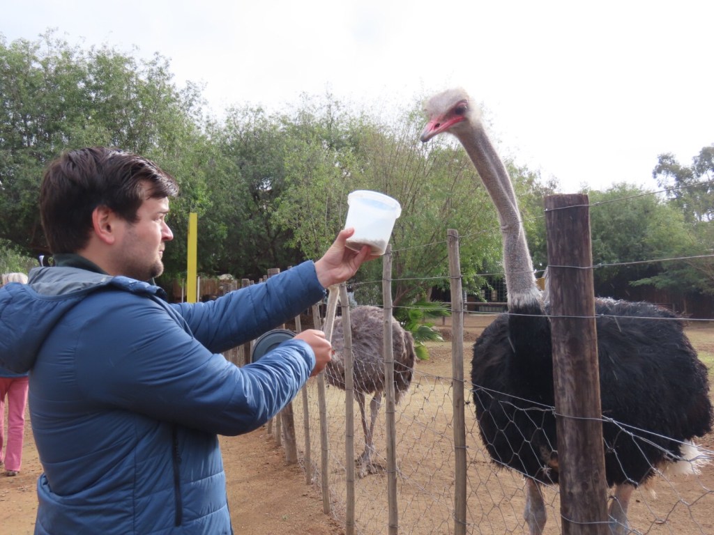Na dat we van deze ervaring waren bijgekomen kregen we ook nog veel te horen over struisvogels (dat er drie ondersoorten zijn) en waar ze allemaal voor gebruikt worden (veren, vlees en leer), hoeveel kippeneieren er in een struisvogelei passen (26) en nog heel veel andere leuke weetjes. Na deze tour hebben we nog even de giftshop meegepakt en daarna zijn we weer terug gegaan naar onze B&B.