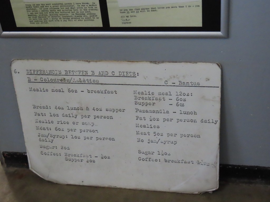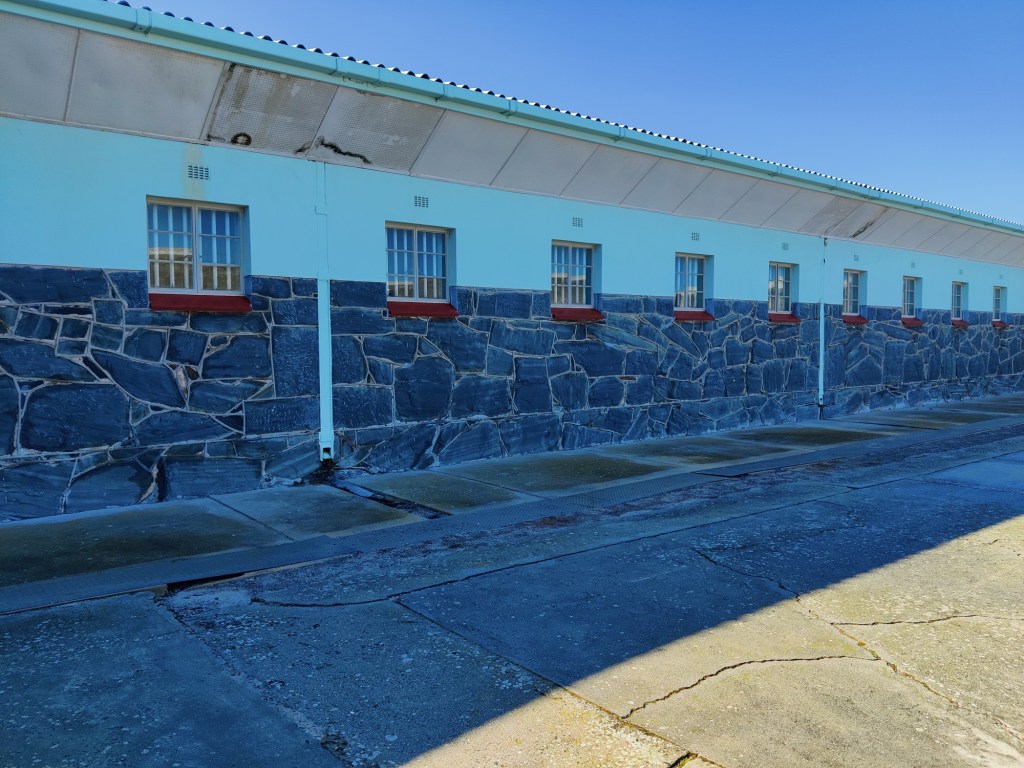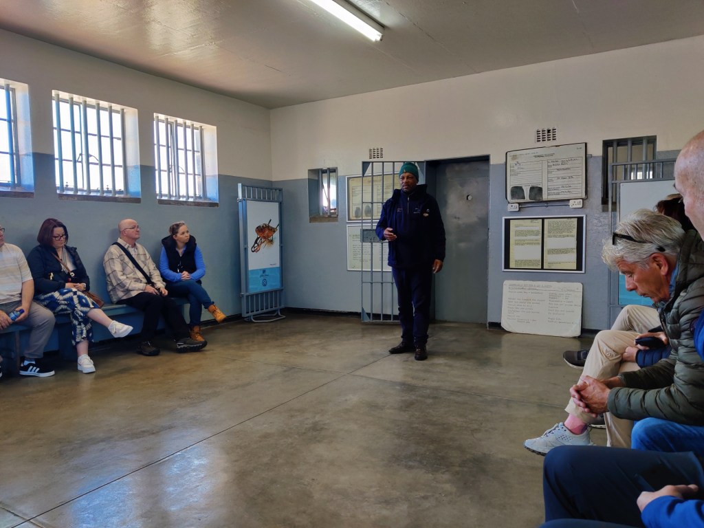 Na de bustour kregen we een rondleiding in het gevangenisgedeelte. Je wordt hier rondgeleid door iemand die zelf ook op robbeneilad gevangen heeft gezeten, wat het wel indrukwekkend maakt. Onze gids kon goed vertellen maar de omstandigheden waar de gevangenen mee te maken hadden waren slecht. Zo hadden ze in de jaren 60 en 70 geen bedden maar matten van misschien 2 cm dik. Ook mochten ze maar 1 keer in de week douchen, werden ze vaak mishandeld door de (witte) guards en de uniformen waren vaak te klein of bijvoorbeeld 2 linkerschoenen. Daarnaast moesten ze uren en uren werken in slechte omstandigheden. Ook binnen de muren van de gevangenis werd er nog aanrassenscheiding gedaan, zo kregen de Afrikanen minder te eten dan de coloured die weer minder te eten kregen dan de Whites.