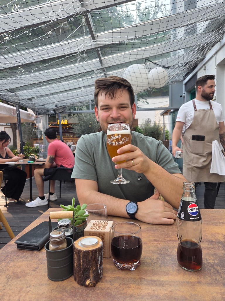 We aten vandaag bij “Fat mama”, een leuk tentje waar ze typische Hongaarse gerechten hadden, maar ook barbecue en burgers. Yannick had de “Kip paprikash”, een soort kip in paprikasaus met noedels, en Michelle ging voor de Fat Mama cheeseburger. We hebben lekker gegeten!