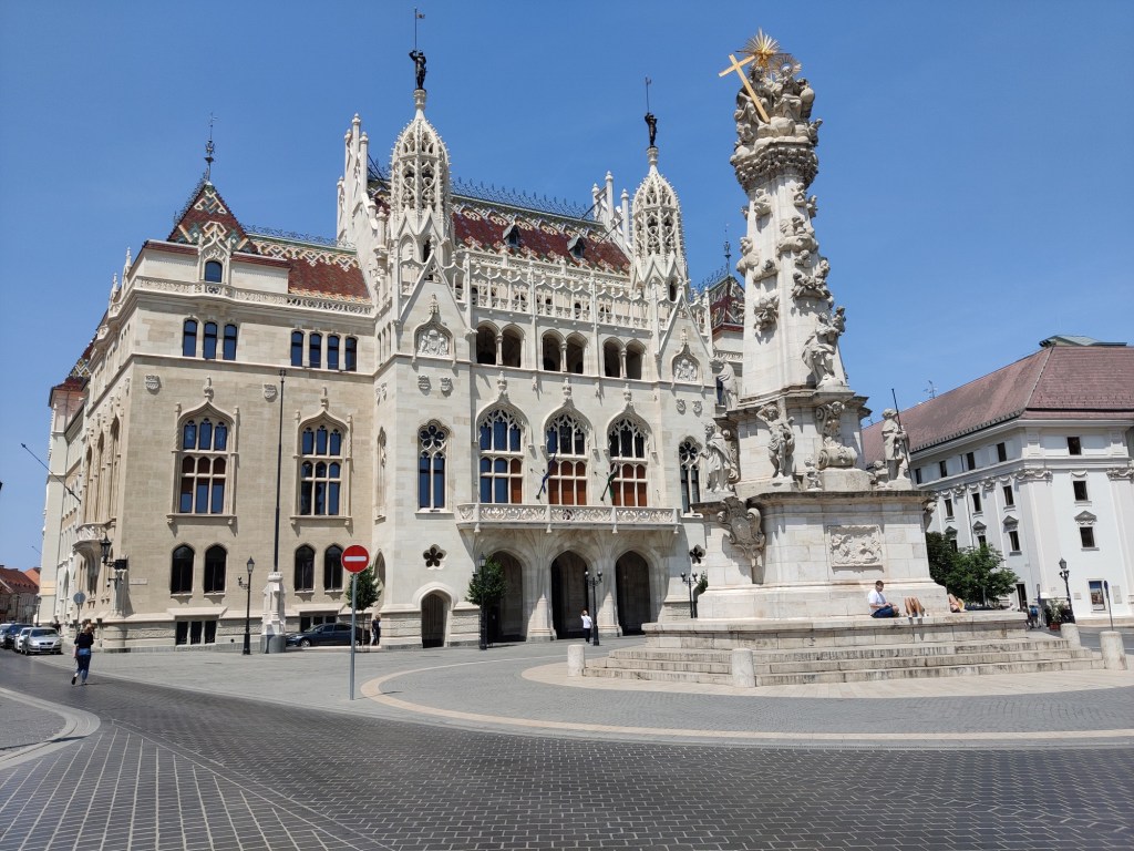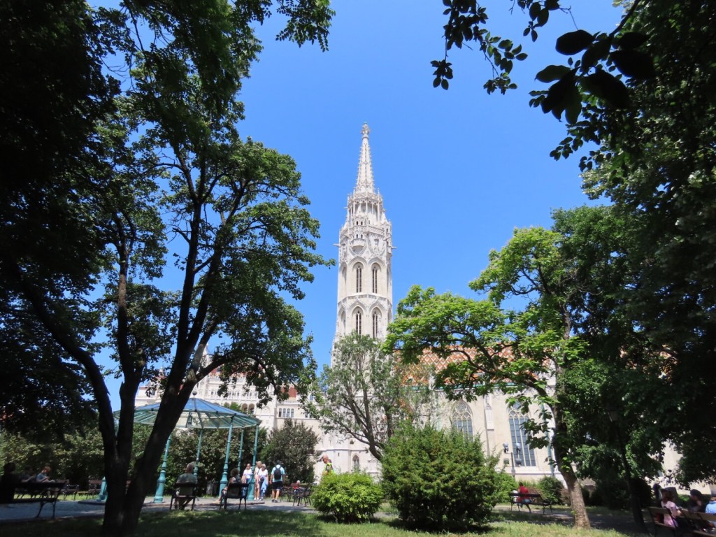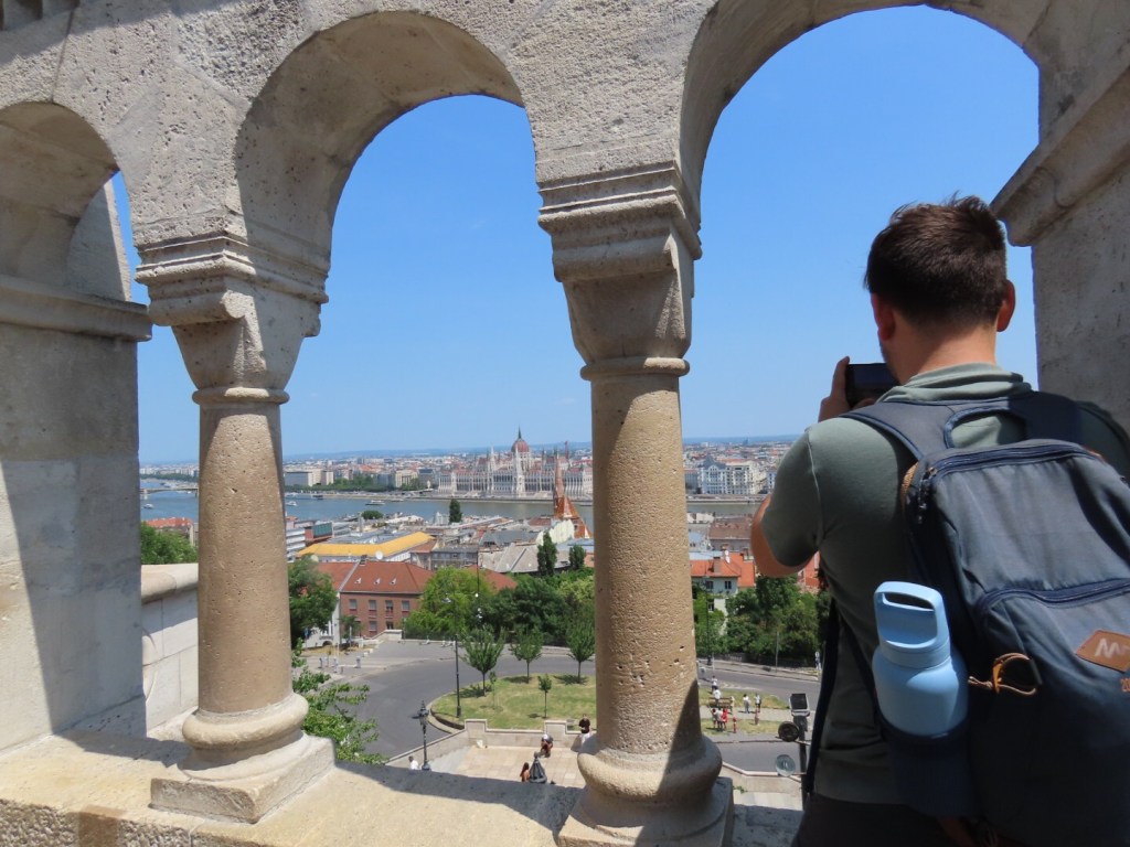 Toen we eenmaal boven waren hadden we een schitterend uitzicht over de stad en kregen we allerlei informatie over de gebouwen waar we bij waren. Zo leerden we dus van alles over het Vissersbastion, de Mathiaskerk en de musea en ambtswoningen. Na ongeveer twee uur zat de tour er op en was het tijd om ons eigen plan voor de middag te trekken.