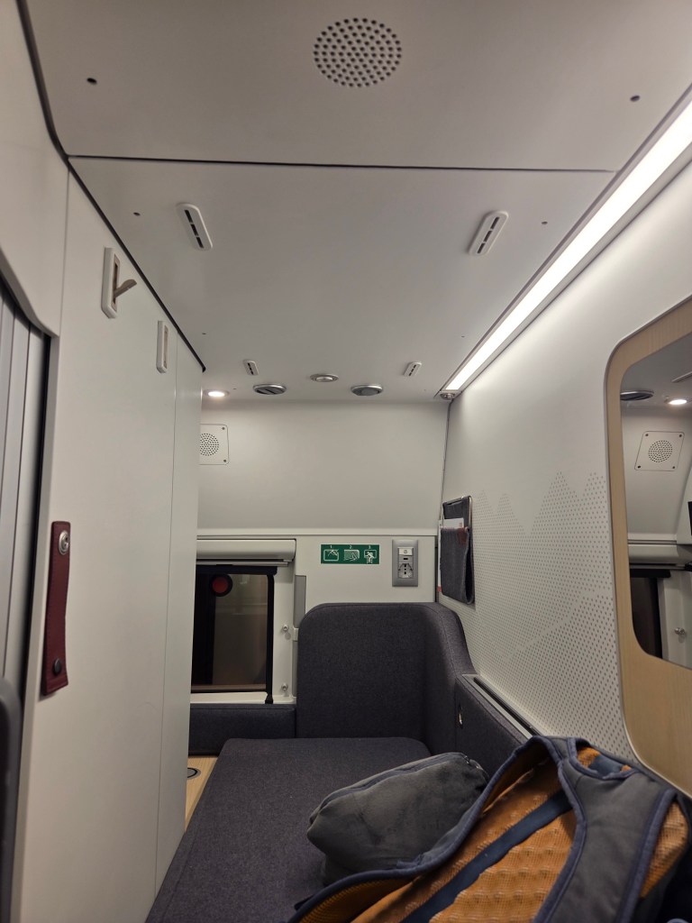 Gisterenavond om ongeveer 12 uur stapte we in onze trein naar Rome. Op onze tickets stonden zitplaatsen, dus wij hadden ons helemaal voorbereid op een zware nacht. Maar tot onze grote verbazing nam de meneer ons mee naar bedjes. Het waren vrij luxe bedjes, je had je eigen coconnetjes met zelfs een schoenenvakje, een tafeltje met spiegel en stroom. We vertrokken om 1.01 uur dus zijn toen vrij snel gaan slapen.