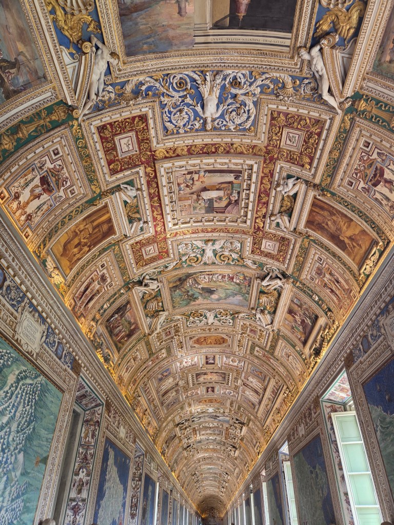 Hier hebben we lekker rond gekeken naar alles wat er daar te zien was, zoals de verschillende schilderijen, beelden, maar ook archeologische vondsten, geschilderde kaarten en natuurlijk de plafond- en muurschilderingen. We vonden het allemaal erg mooi om te zien en konden zo dus ook de Sixtijnse kapel van onze bucketlist afstrepen.