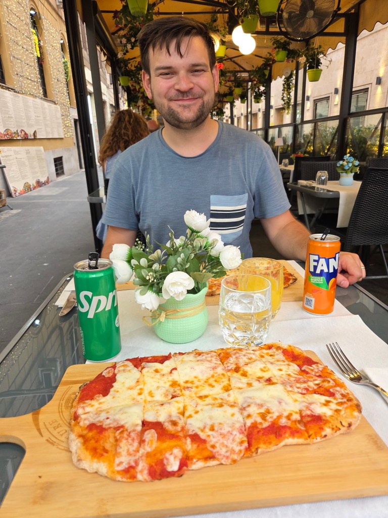 Na deze stop hebben we nog wat rond Vaticaanstad gewandeld, de tassen weer opgehaald, deze weer gedropt bij een andere bagagekluis en zijn we naar het Colloseum gegaan. Een bezoek aan Rome is natuurlijk niet compleet als je daar niet bent geweest. Hierna gingen we op zoek naar wat te eten, en nadat we allebei een lekkere pizza naar binnen hadden gewerkt was het tijd om de trein te pakken naar Napels.