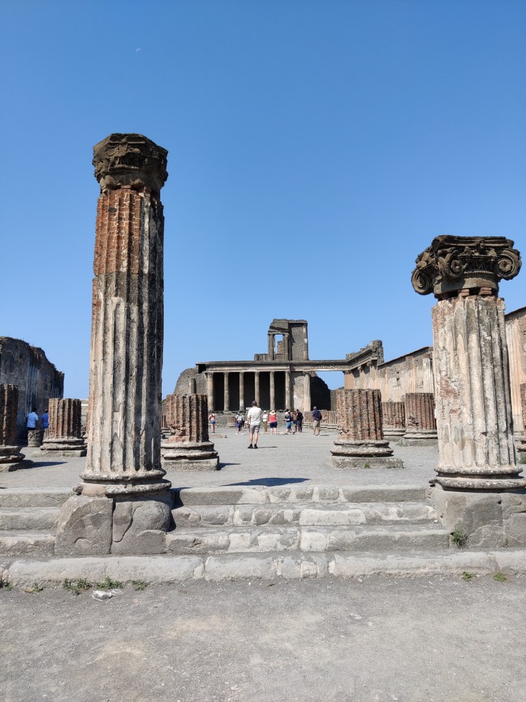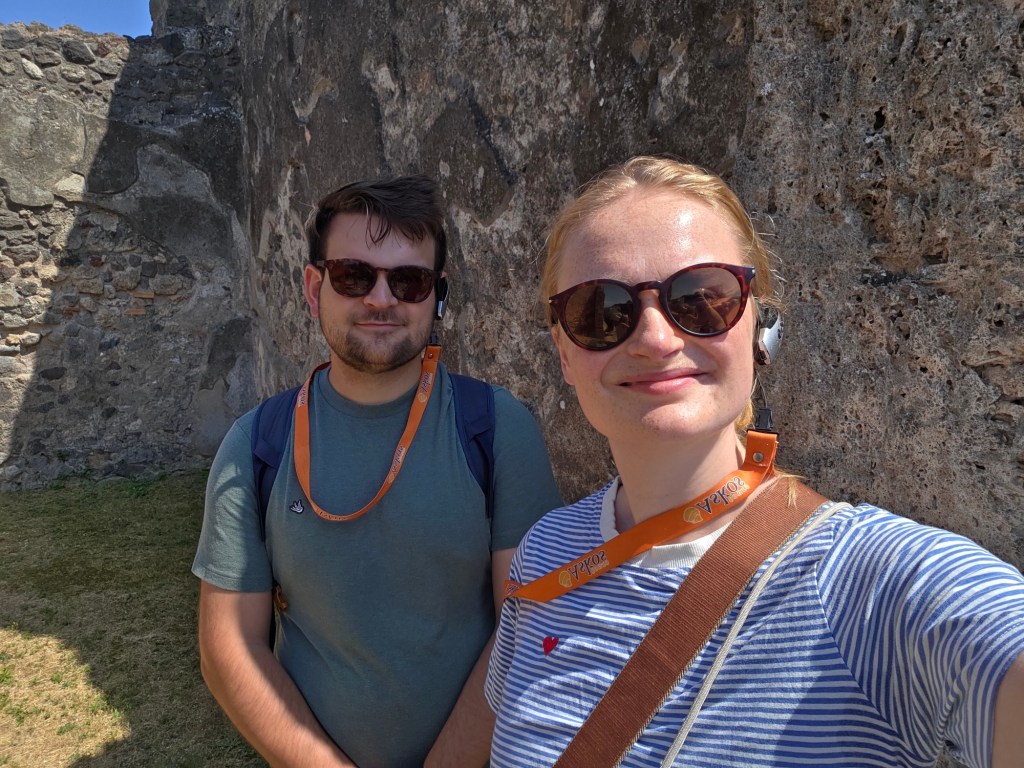 Vandaag was het tijd voor het uitstapje in (omgeving) Napels waar we het meeste zin in hadden: Pompeii (of Pompeï, maar dat eerste typt wat makkelijker). We hadden een tour geboekt die om half tien zou vertrekken vanaf de ingang, dus wij stonden om half negen op het station om de trein te pakken. Helaas bleek dat je voor de trein die wij wilde andere tickets nodig had die wij hadden gekocht (Express tickets), dus moesten wij een treintje later met de rest van het plebs. Precies op tijd kwamen we aan en konden we met de tour beginnen.