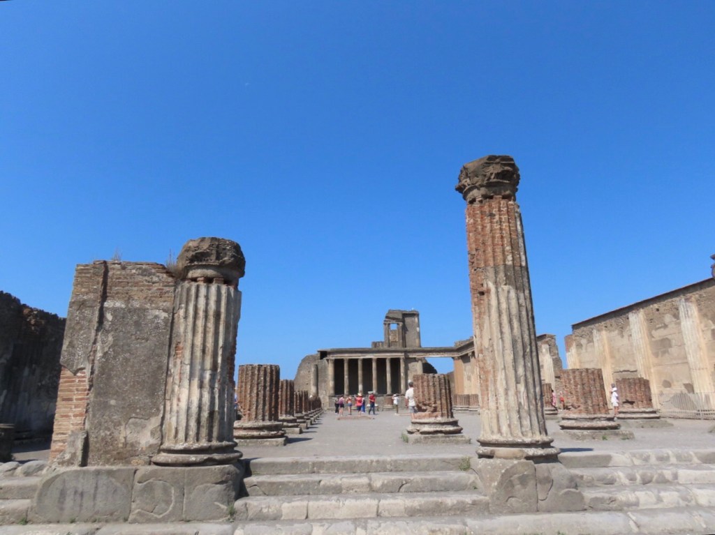 Rosanne vertelde van alles over de uitbarsting, en de geschiedenis eromheen, maar vooral veel over het dagelijkse leven in Pompeii van ongeveer 2000 jaar geleden. Dit was ook wat wij zo leuk vonden aan deze tour, we kregen echt een goed idee hoe het er toen uitzag. Zoals dat er bijvoorbeeld op bijna elke hoek een winkel zat waar je wat te eten kon halen, dit kon je namelijk zien aan de terracotta potten die in de aanrechten zaten verwerkt, hier werd het eten in bewaard.