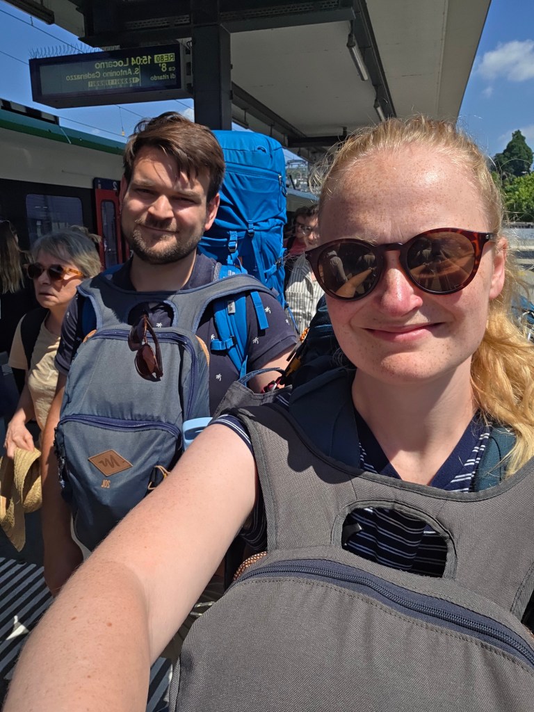 Daarna hadden we nog 2 treinritjes in het vooruitzicht. We gingen van Milaan naar Lugano. Dit was ongeveer een uurtje. De trein was erg druk maar gelukkig konden we allebei nog een stoel bemachtigen. In Lugano hadden we nog 50 minuutjes dus haalden we even een waterijsje en wat te drinken en daarna stapten we in de trein naar Luzern, nog zo’n 2 uurtjes. Onderweg hadden we al mooi uitzicht op de Zwitserse bergen en meren.