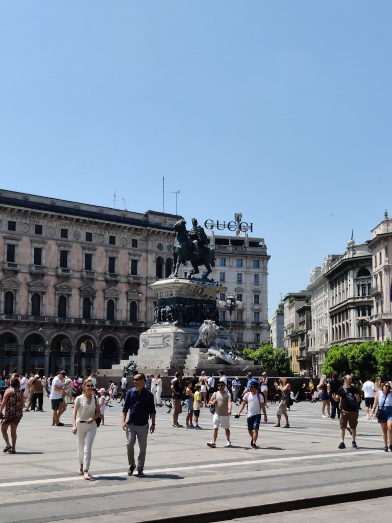 We pakten de metro naar het station Duomo waar de grote bekende kerk Duomo di Milano staat. Hier hebben we even wat foto’s van gemaakt en met gevaar voor eigen leven het plein over gestoken. Er waren namelijk aardig wat duiven heen en weer aan het vliegen.