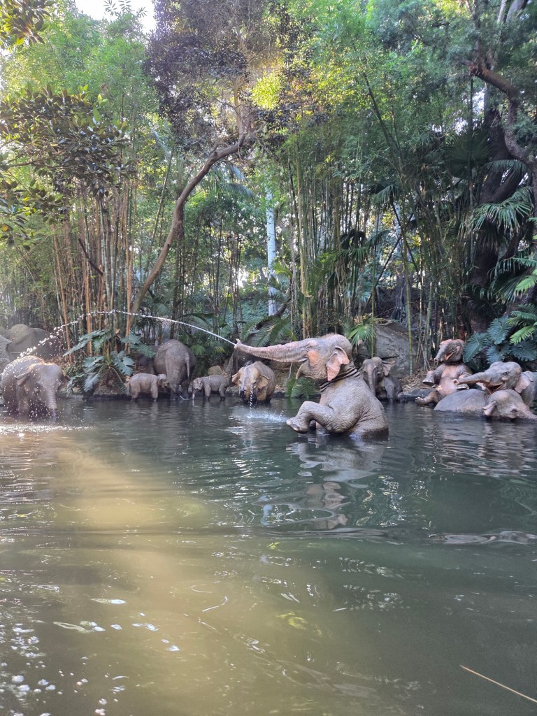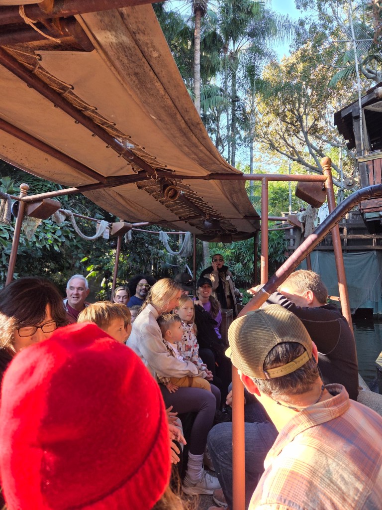 De eerste ride van vandaag was de Big Thunder Mountain Railroad, daarna gingen we op Jungle Cruise en in Pirates of the Caribean. Zo konden we in het eerste uur al 3 ritjes afvinken. We hadden al gelezen dat het hier gedurende de dag vordert steeds drukker wordt, dat bleek ook echt zo te zijn. Daarna gingen we in Tiana’s Bayou Adventure, een soort boomstammenbaan. Hier zijn we flink nat geworden.