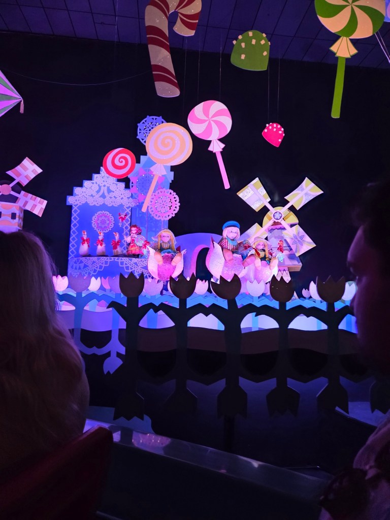 Daarna gingen we naar een klassieker, Its a small world. Deze was nu helemaal in kerstthema. Ook in deze versie kwamen de Nederlandse molens weer voorbij. We vonden het leuk om de attracties met elkaar te vergelijken en omdat we al veel van Achter de attractie op Disney+ hebben gezien hebben we van veel attracties ook wat achtergrond informatie. We ruilden daarna de bootjes in voor de karretjes van Mickey & Minnies Runaway Railway. Ook een hele leuke attractie!