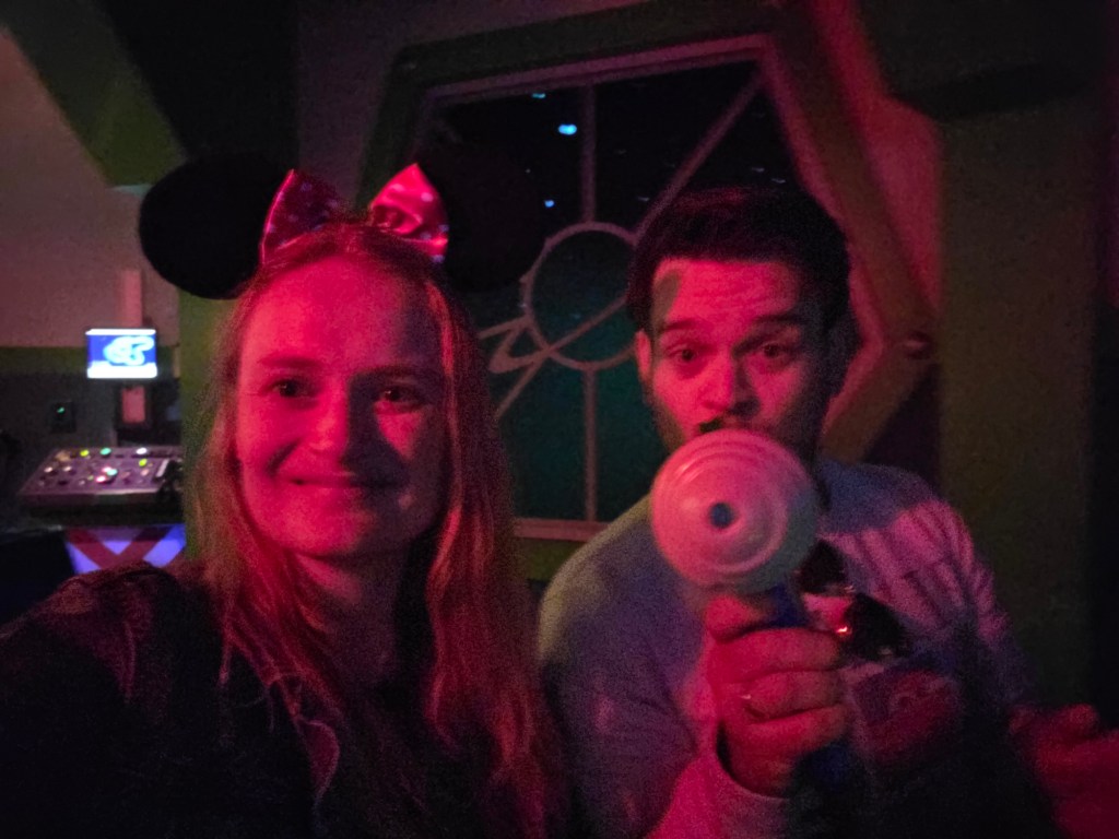 Na het eten zijn we nog in Smuglers run geweest waar wij piloten waren die het schip moesten besturen. Ook zijn we met Mickey op de foto geweest, ons eerste karakter van vandaag. En dus nog een keer in Astro Blasters. We hebben daarna een plekje gezocht voor het vuurwerk. We vonden het allebei wat tegenvallen ten opzichte van Parijs & Florida, maar alsnog was het leuk om weer mee te kunnen maken.