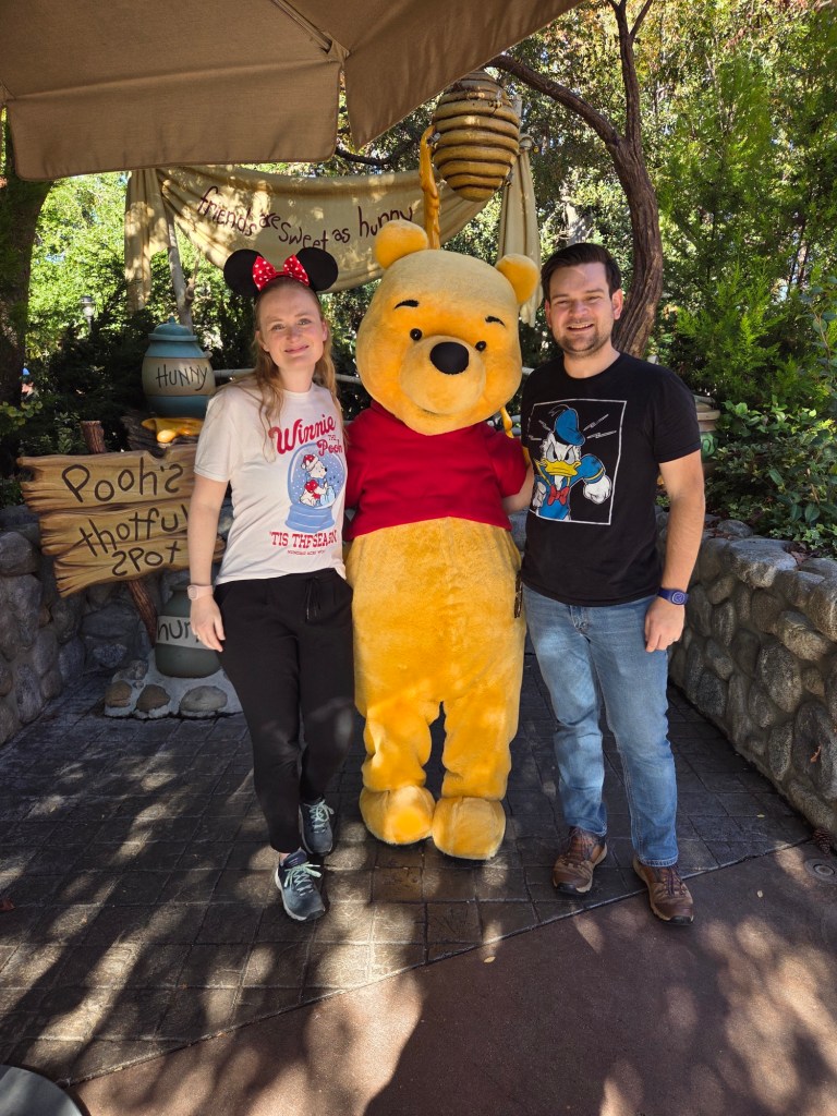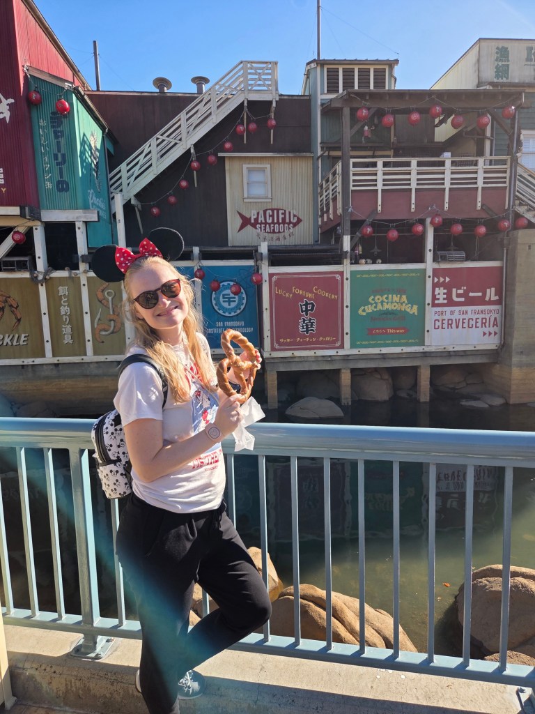 Hierna gingen we op zoek naar Donald Duck en Winnie de Pooh om nog wat foto’s te maken en was het tijd om de oversteek naar DCA te maken. Hier hebben we even geluncht (een pretzel voor Michelle en Birria taco’s voor Yannick). Na de lunch gingen we Toy Story Mania in waar Michelle dit keer wist te winnen en zijn we nog een keer bij Radiator racers in de rij gegaan. In totaal hebben we vandaag ook 3 keer in Guardians of the galaxy gezeten, waardoor het volgens mij onze meest populaire attractie (1x in Florida, 4x in Parijs en 5x in Anaheim) over alle parken heen is.