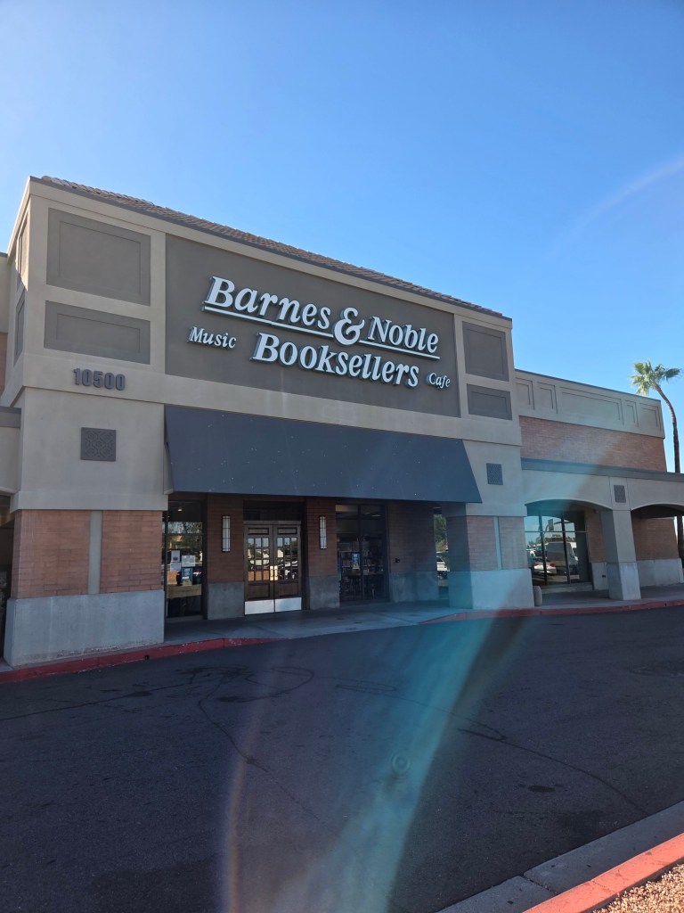 Net buiten Phoenix maakte we nog even een stop bij de Barnes & Noble. Dat is de boekenwinkel die je hier overal in de VS vindt. Het was leuk om even te kijken wat ze hier allemaal voor titels hadden staan. Ook een aantal waarvan Z&K de Nederlandse titels uitgeeft dus die moest Michelle natuurlijk even allemaal aanwijzen. Yannick is geslaagd voor een boek wat hij graag wilde hebben: Dungeon Crawler Carl.
