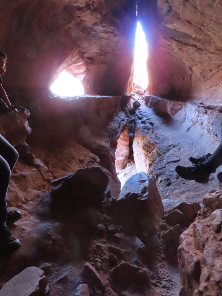 We begonnen al vrij vroeg met de eerste wandeling. Rond kwart over 9 startte we bij de Soldiers Pass. Deze wandeling van ongeveer 6 kilometer kwam langs een aantal mooie plekken. We zagen eerst een hele grote sinkhole, daarna kwamen we langs de 7 Sacred Pools en we eindigden in de Soldiers Caves. Daar hebben we even lekker pauze gehad en zijn we ook in de caves geklommen. Toen gingen we via dezelfde weg weer terug naar de auto. Dit was wat meer dalen dan stijgen en we hadden wat minder fotostops dus de terugweg ging wat sneller.
